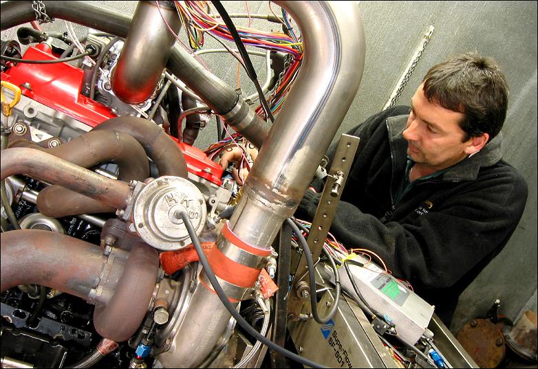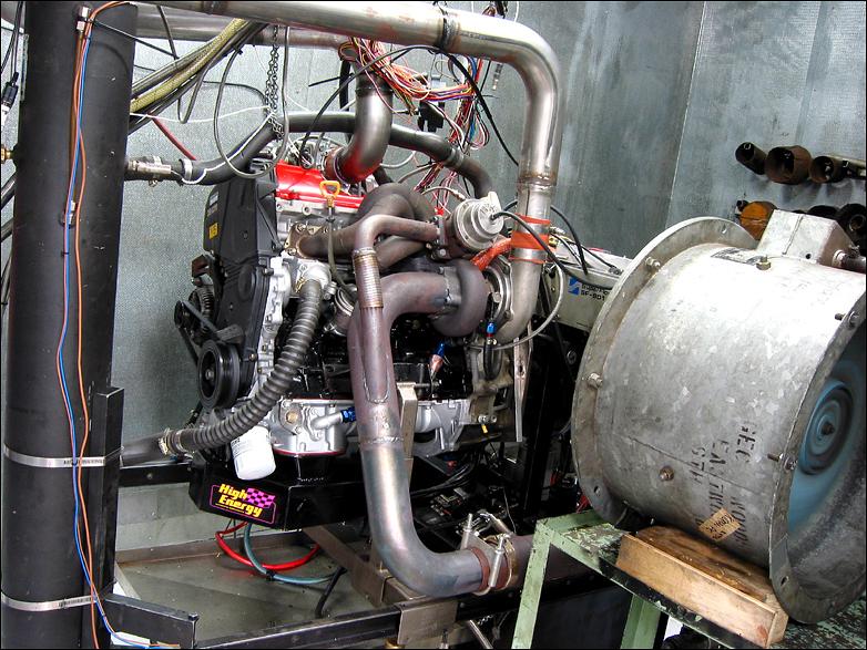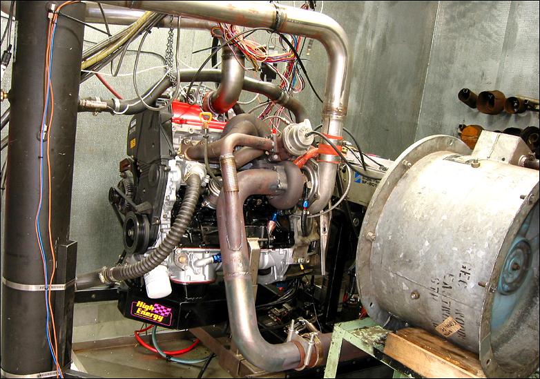 Strapped to the engine dyno at Bill Hanson's Engine Developments,