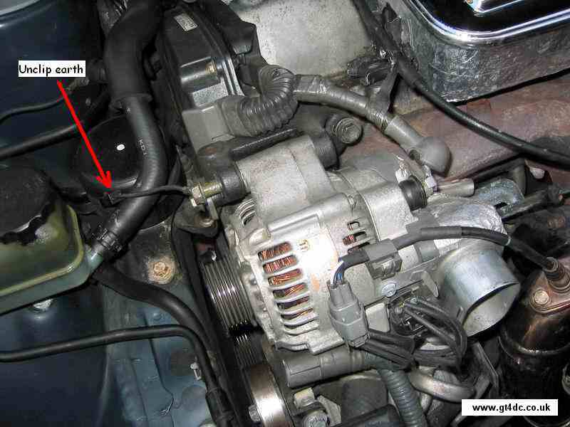 Slacken off the alternator belt, and remove it |