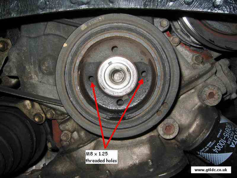 Next is to attach either a 2 or 3 leg bearing puller and remove the pulley from the crank |