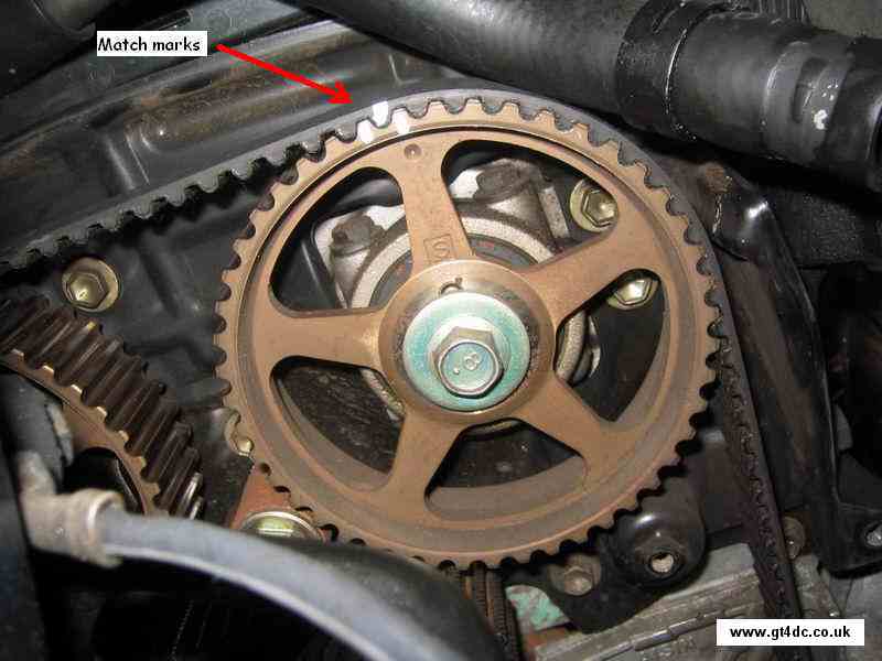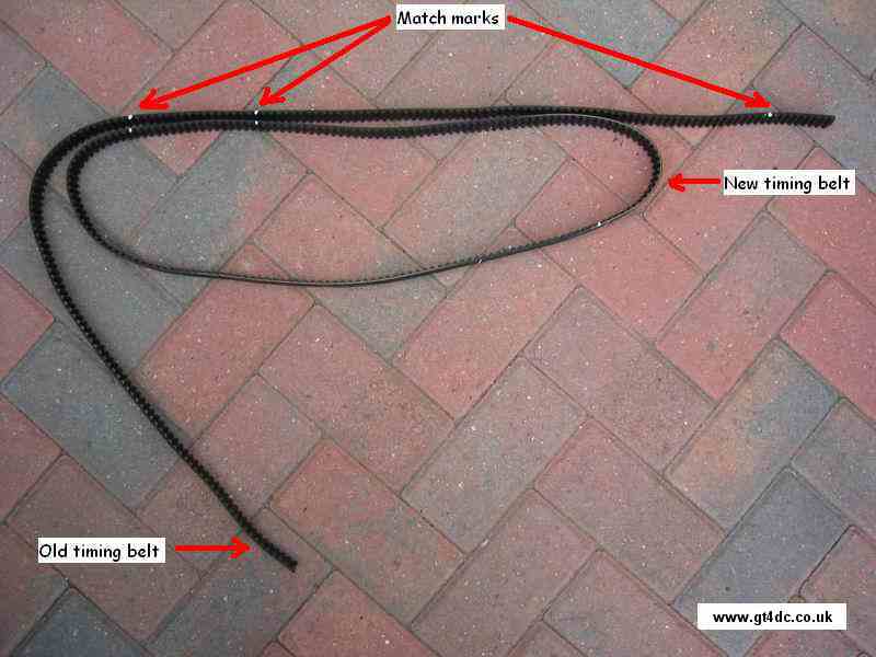 While you are at the crank, place some match marks on the old timing belt, either side of a mark on the crank with a marker pen or Tippex.