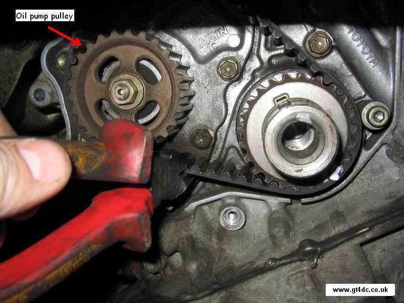 Once you are happy your marks won't rub off and are correctly aligned, cut off the old cambelt from in between the crank and the oil pump pulley